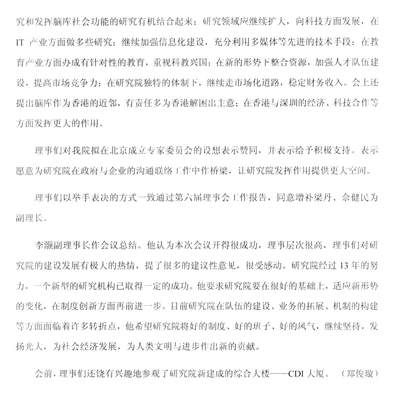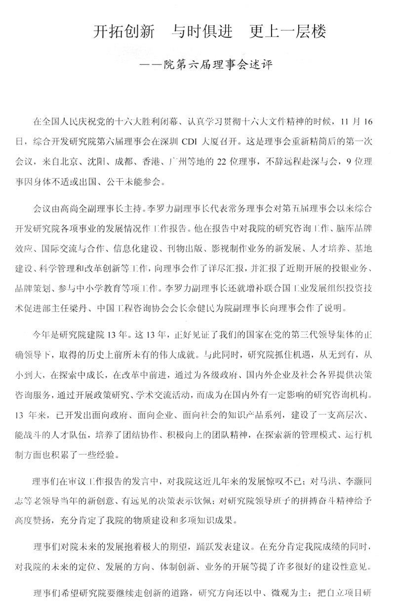 院第六届理事会述评——开拓创新与时俱进更上一层楼