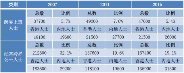 深港两地经济往来密切。突出表现为跨境上班和跨境公干人次的变化。过去10年,跨境上班的香港人士大体稳定,而在香港上班的内地人士增长较快,2015年比2007年增加6400人,超过95%居住在深圳。经常跨境公干人士中,香港人士基数较大,内地较小。尽管过去10年总量有所下降,但主要是香港人士下降,赴港公干的内地人士实际上是增加的。这意味着两地商务往来趋于双向和均衡。尽管没有深港之间的数据,但估计深港之间经常跨界公干的人士应该不会少。由此可见,虽有边界存在,深港经济和商务往来密切而活跃,并未受到较大影响和制约。